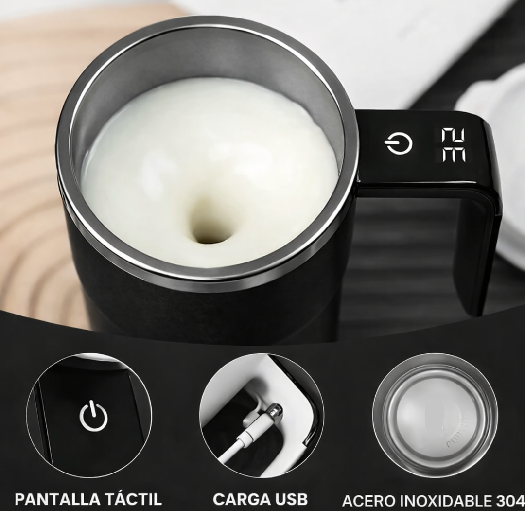 Mezcla automáticamente tu bebida, controla la temperatura en todo momento y disfruta de tu café siempre caliente con solo pulsar un botón, sin cucharillas ni microondas y con un diseño cómodo y seguro para el uso diario.